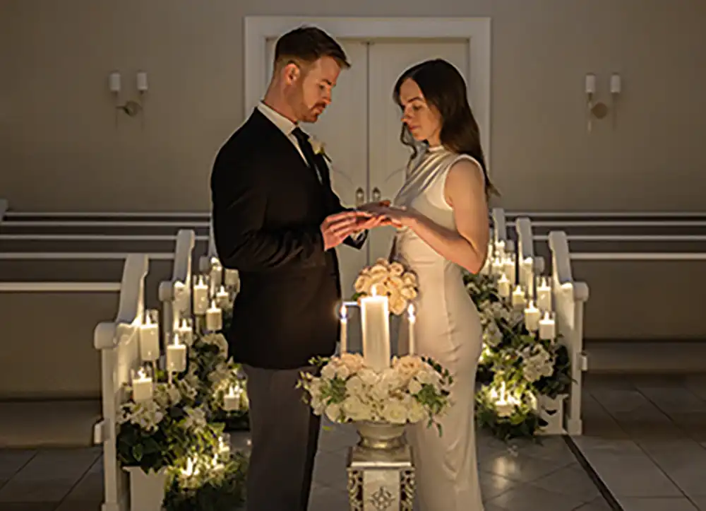 Step into a world where romance and radiance connect. Our elegant chapel is transformed into an enchanting sanctuary illuminated by a constellation of over 450 candles, creating an intimate ambiance unlike anything else on the Las Vegas Strip. This innovative experience is the first candlelit wedding package of its kind in Las Vegas, setting a new standard for romantic ceremonies. You’ll experience a magical moment that feels both timeless and unforgettable as the gleam of candlelight dances across the chapel, casting warm light around both you and your guests. This is more than a ceremony, it’s an immersive experience of celebration surrounded by the flicker of soft, glowing candles.