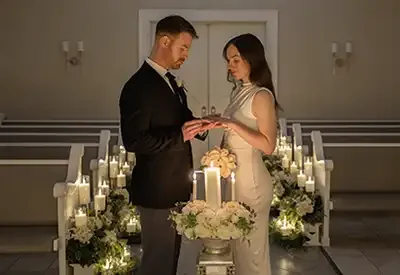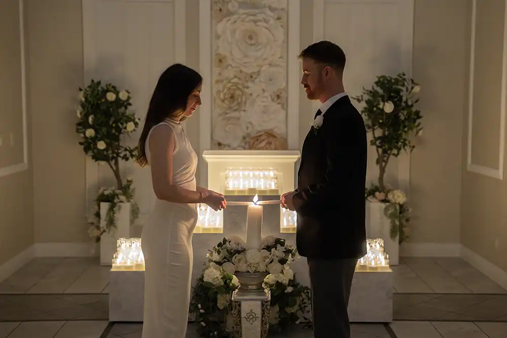 You’ll experience a truly magical moment that feels both timeless and unforgettable as the gentle gleam of candlelight dances across the chapel, casting a warm constellation of light around both you and your guests. This is more than a ceremony, it’s an immersive experience of celebration surrounded by the abiding flicker of soft, glowing candles.